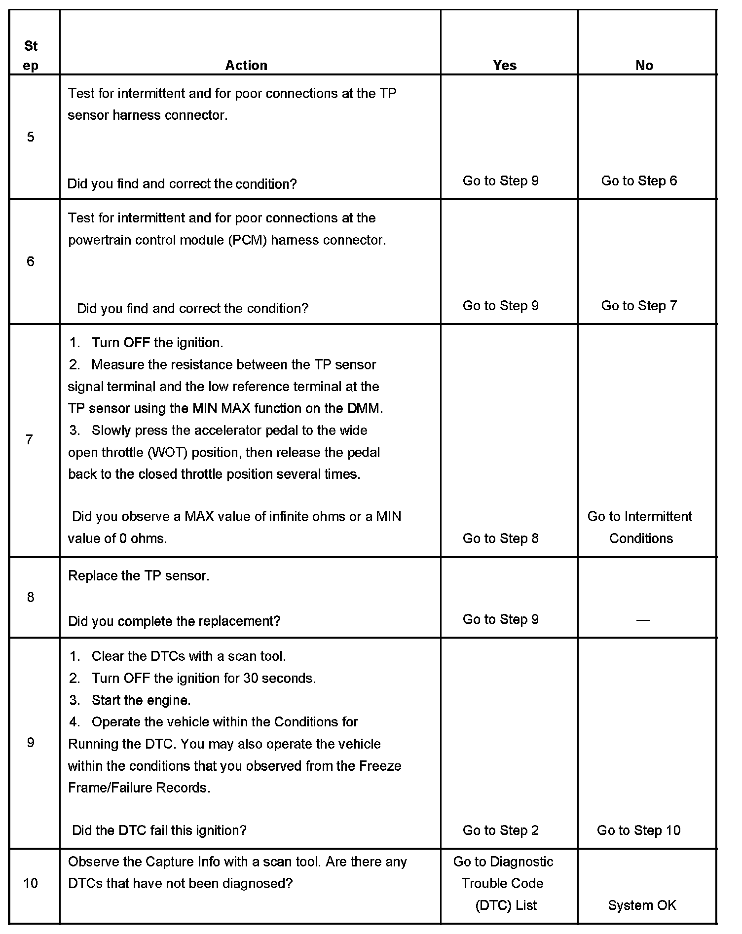 7. This test will determine an intermittent faulty TP sensor utilizing the MIN MAX, 100 millisecond capture mode on the DMM.