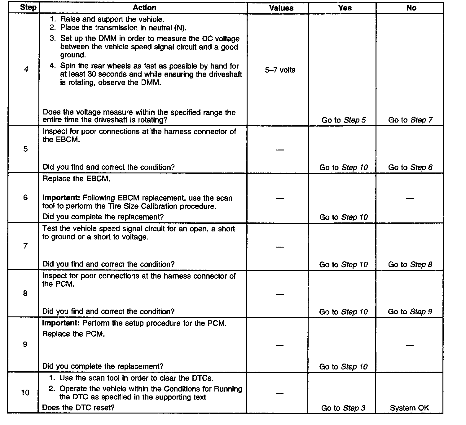 4. This step tests for a missing or erratic vehicle speed signal from the PCM. An assistant may be required to perform this test.