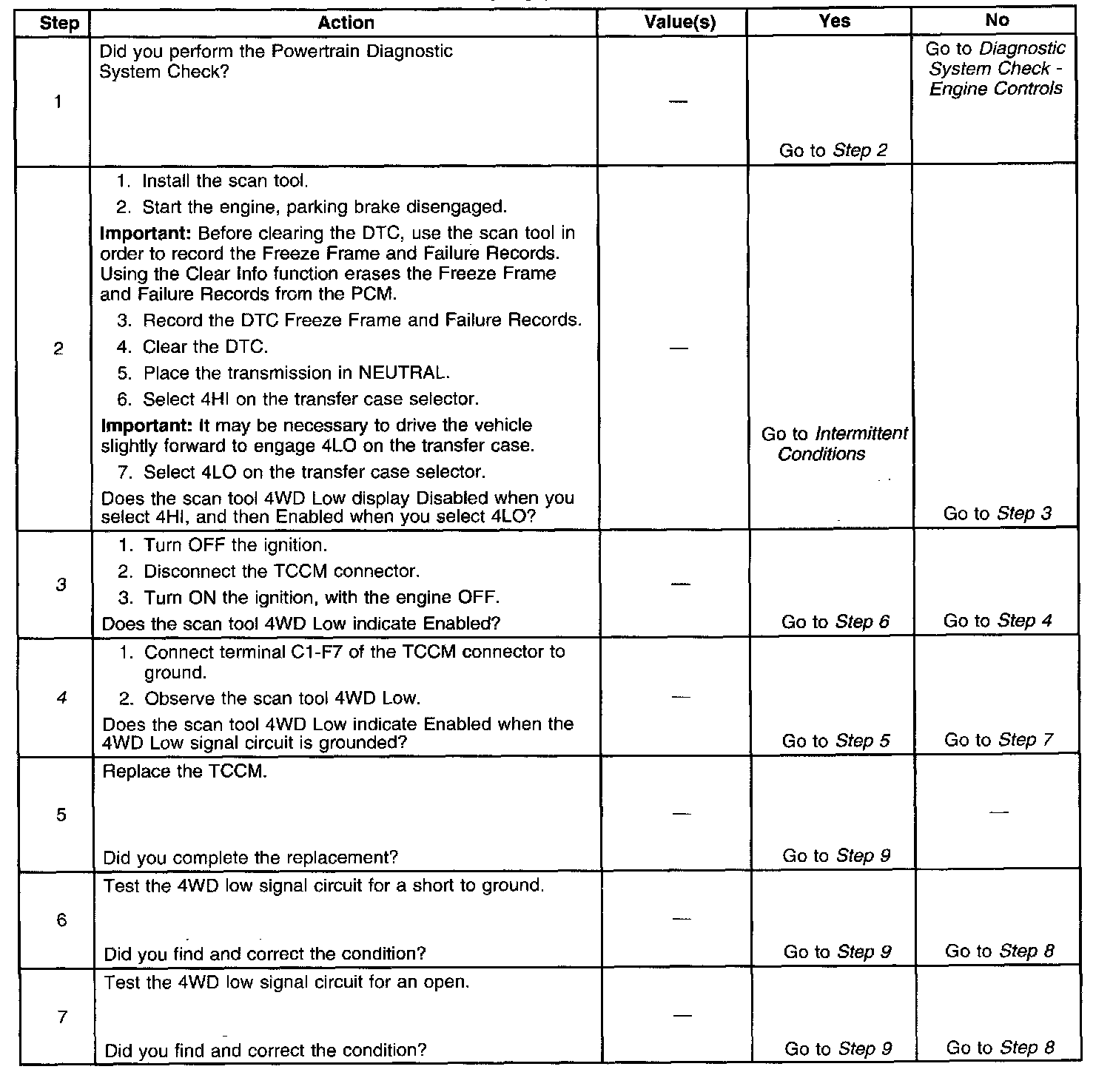 4. This step tests for an open in the 4WD low signal circuit or a faulty TCCM.