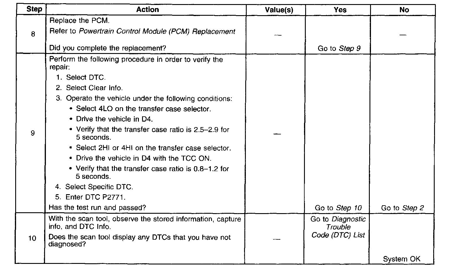 ^ The PCM stores DTC P2771 in PCM history during the second consecutive trip in which the Conditions for Setting the DTC are met.