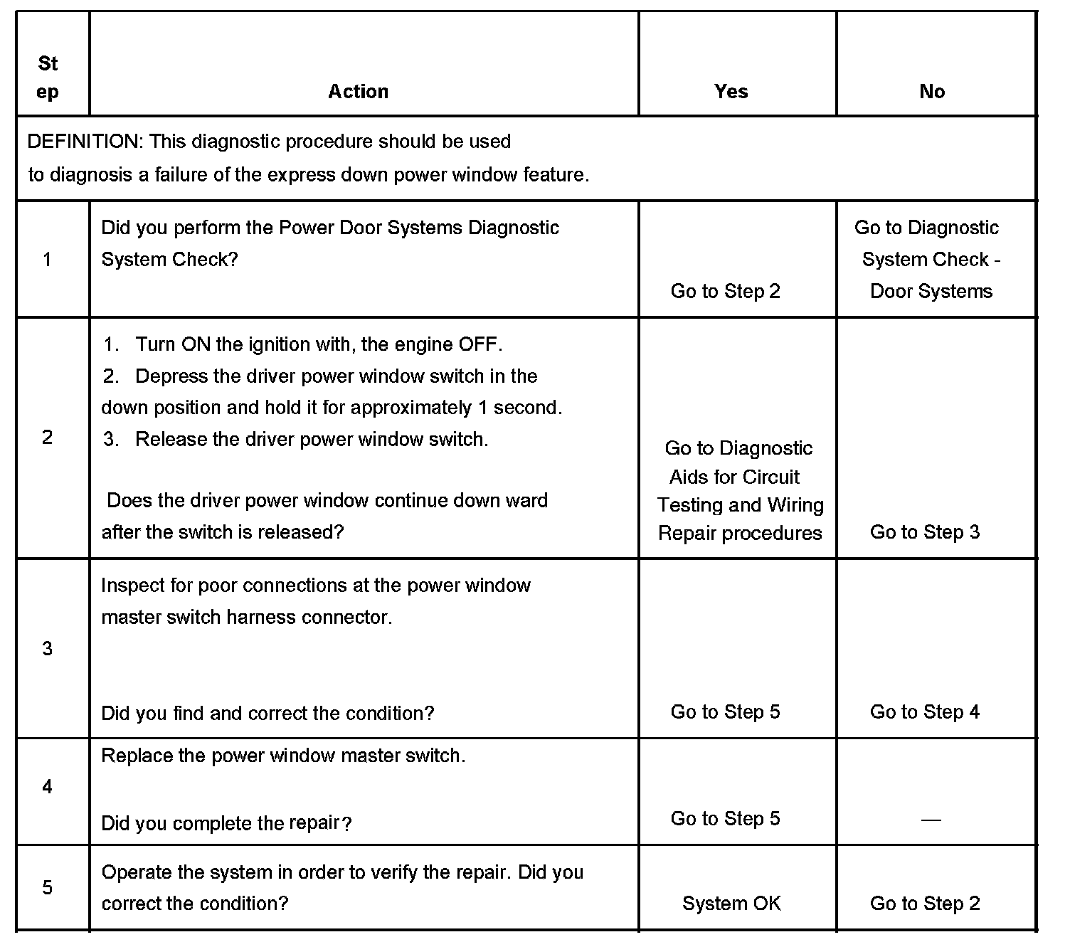 Power Windows - Inoperative - Express Down Function