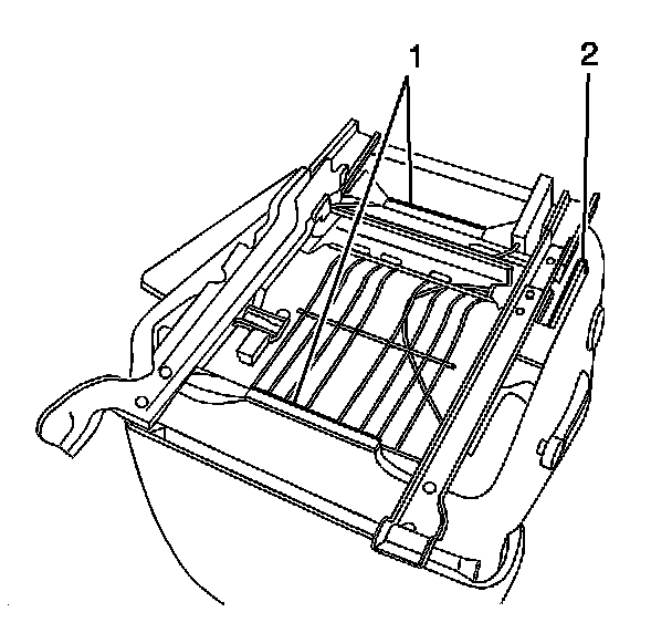 4. Install the J-strips (1, 2) to the seat cushion frame.