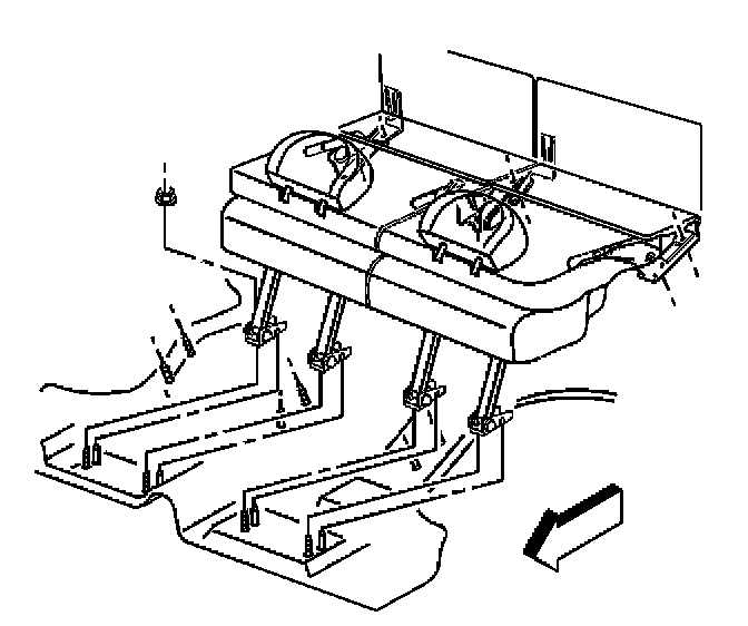 2. Fold the seat back forward in order to install the rear seat mounting nuts.