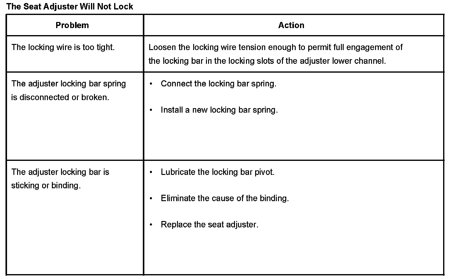 The Seat Adjuster Will Not Lock: