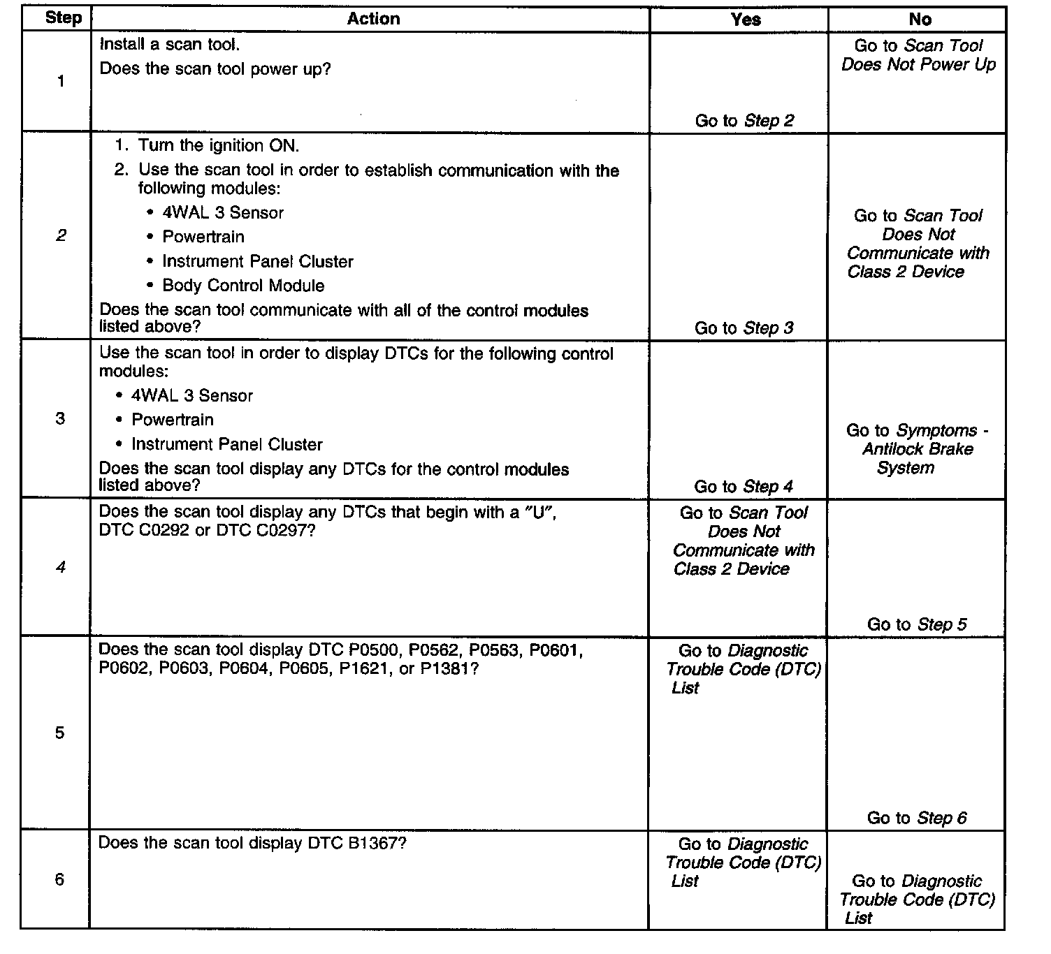 2. Lack of communication may be due to partial or total malfunction of the class 2 serial data circuit. The specified procedure will determine the particular condition.