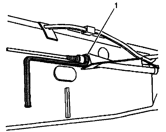 6. Using the J37043 (1), collapse the locking tabs on the park brake cable.