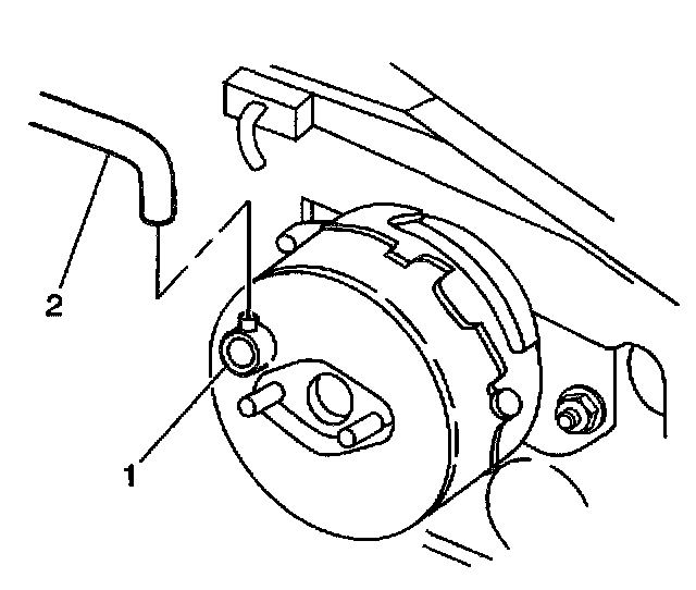 3. Remove the vacuum brake booster check valve from the hose (2).