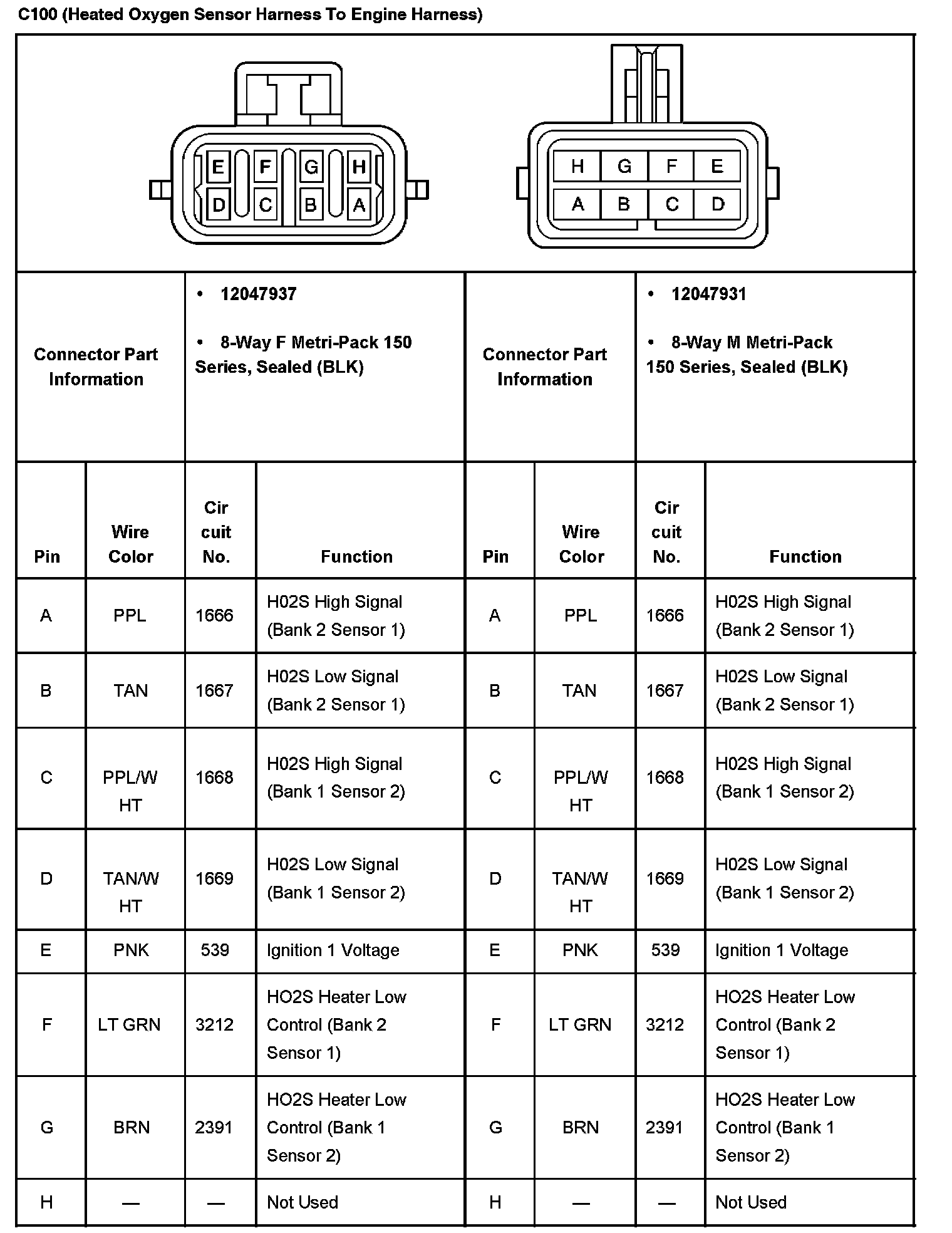 C100 (Heated Oxygen Sensor Harness To Engine Harness):