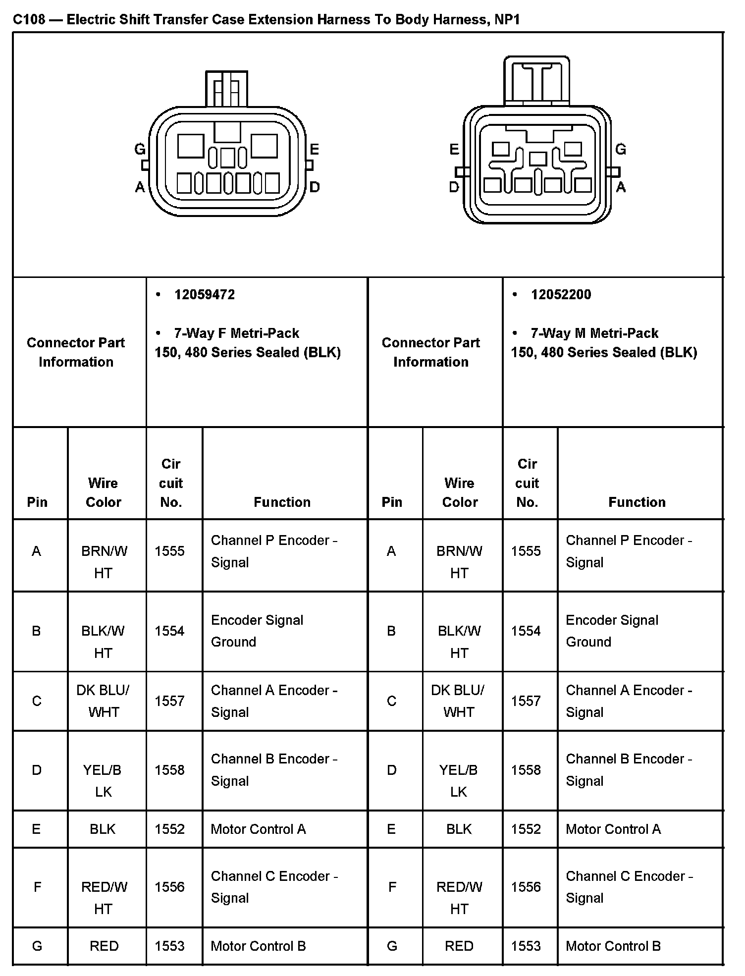 C108 - Electric Shift Transfer Case Extension Harness To Body Harness, NP1: