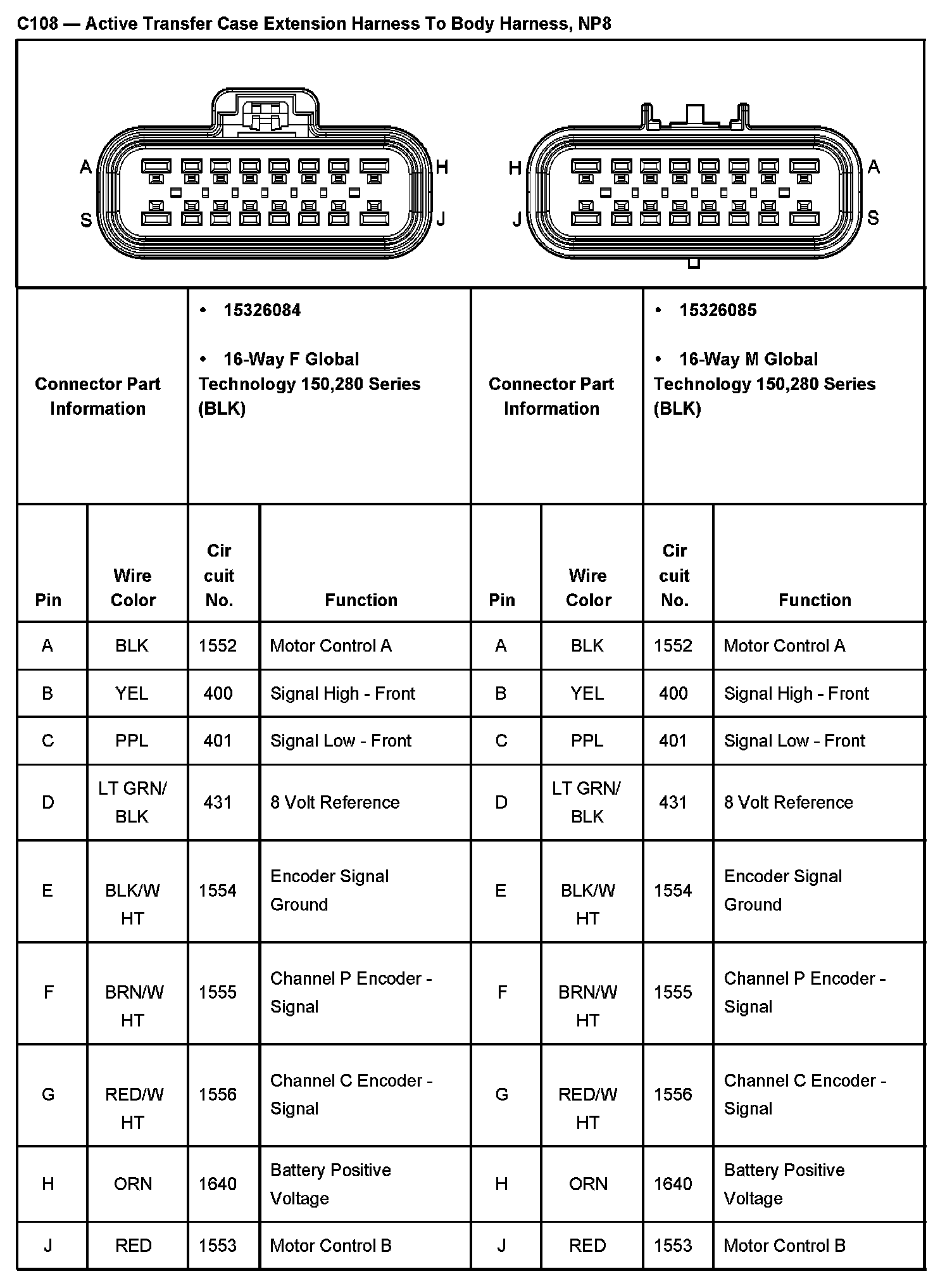 C108 - Active Transfer Case Extension Harness To Body Harness, NP8 Part 1: