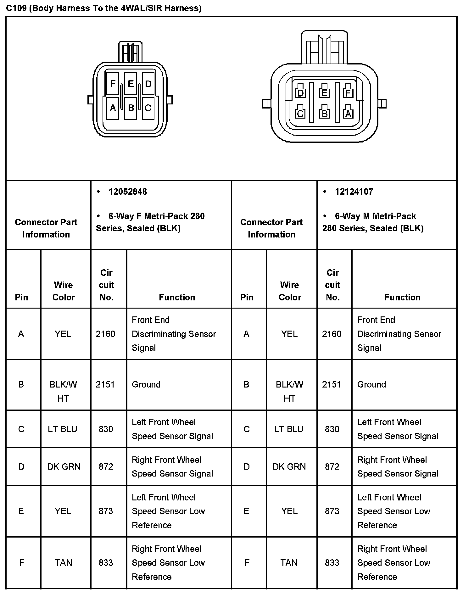 C109 (Body Harness To The 4WAL/SIR Harness):