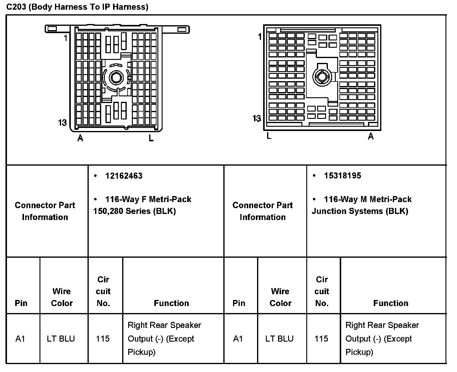 C203 (Body Harness To IP Harness) Part 1: