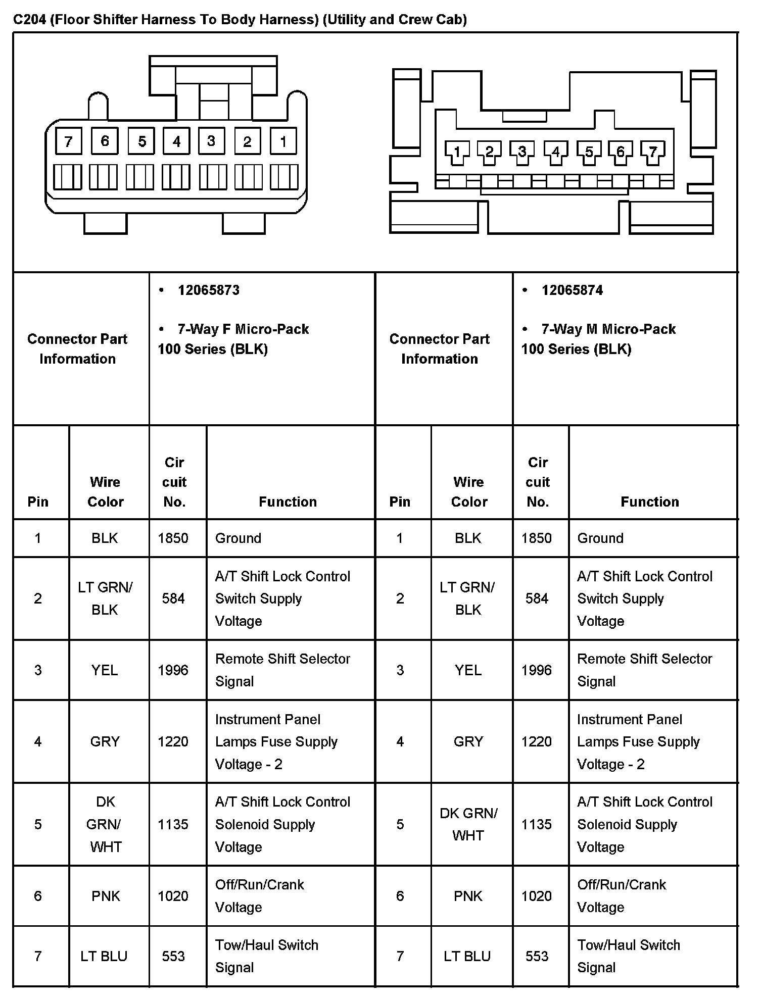 C204 (Floor Shifter Harness To Body Harness) (Crew Cab):
