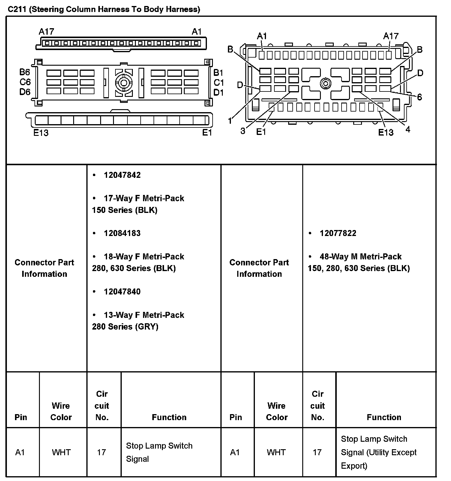 C211 (Steering Column Harness To Body Harness) Part 1:
