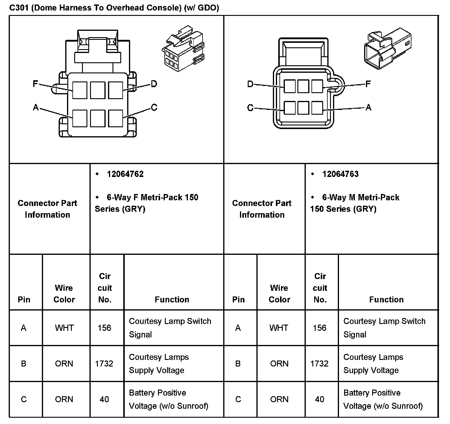 C301 (Dome Harness To Overhead Console) (With RPO Code GDO) Part 1: