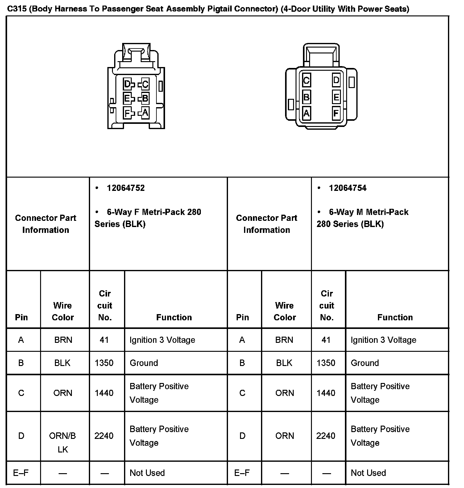 C315 (Body Harness To Passenger Seat Assembly Pigtail Connector) (4-Door Utility With Power Seats):