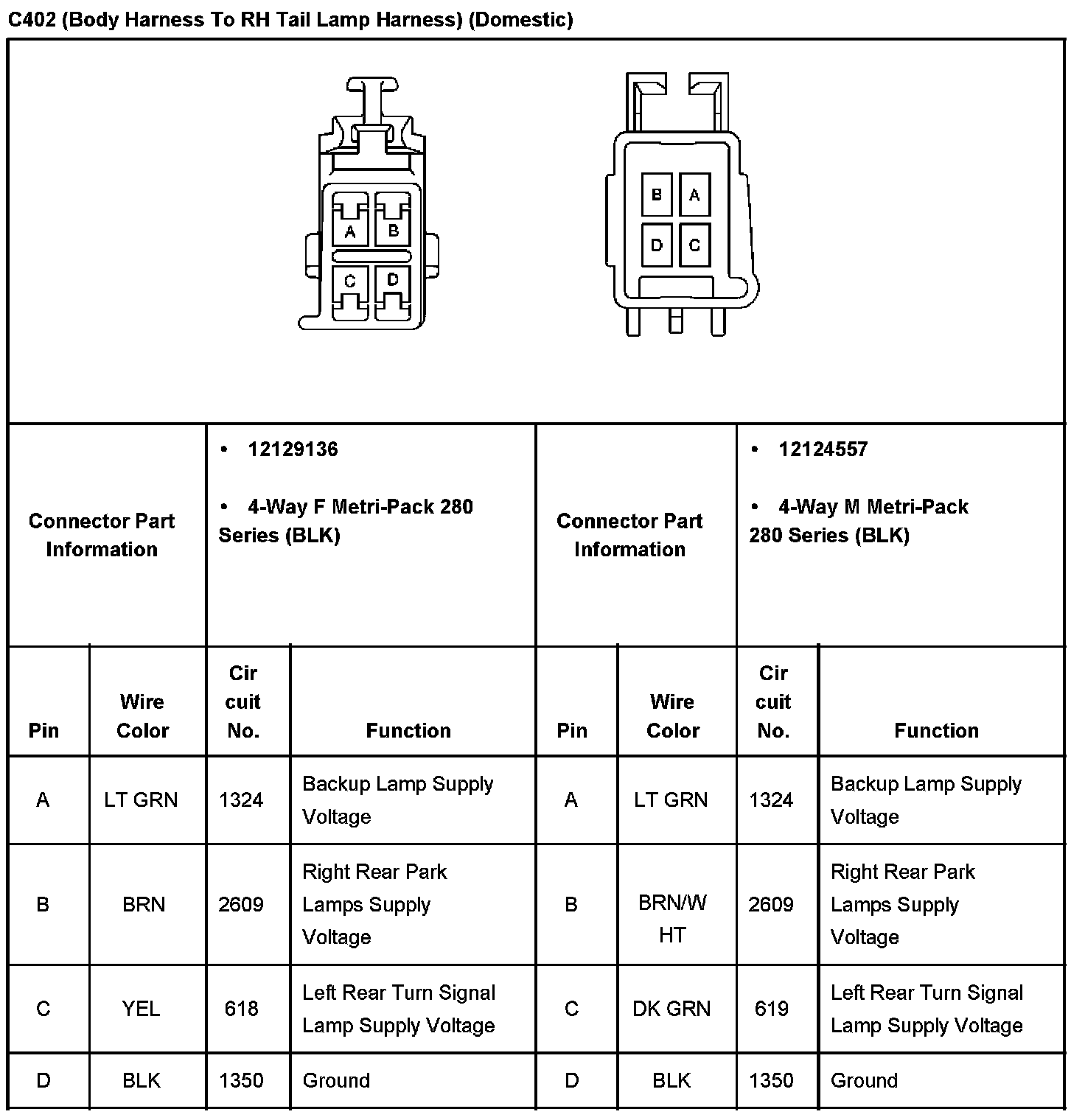 C402 (Body Harness To RH Tail Lamp Harness) (Domestic):