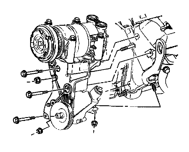 18. Slide the power steering pump mounting bracket with the power steering pump and the A/C compressor on the stud.