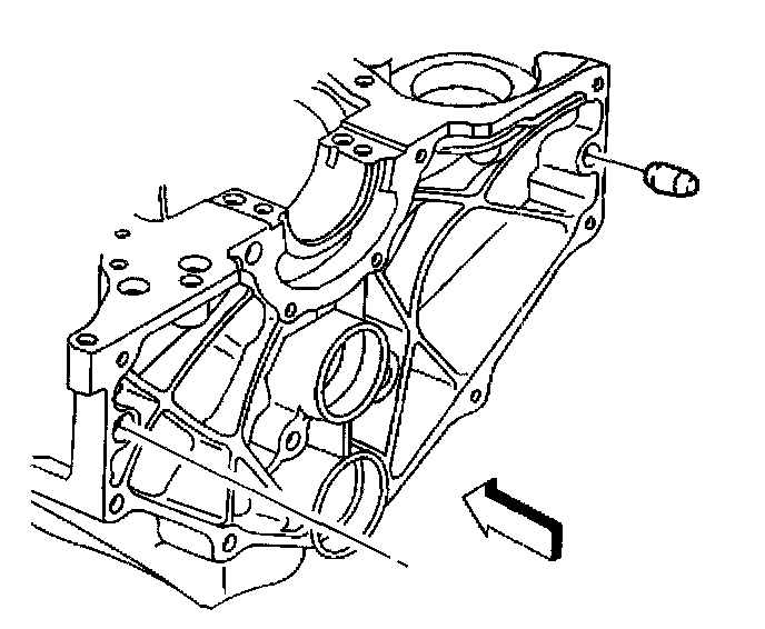 8. Remove the engine block right rear oil gallery plug.