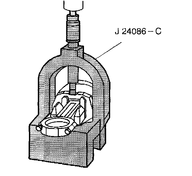 2. Press the piston pin from the connecting rod using the J 24086-C. The piston pin has an interference fit into the connecting rod, and is full floating in the piston.