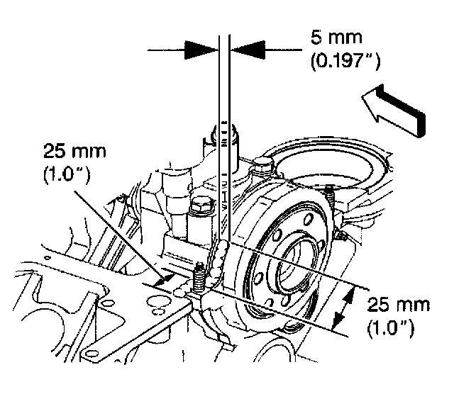 9. Measure the clearance between the 3 oil pan-to-transmission housing measurement points in order to ensure proper alignment.