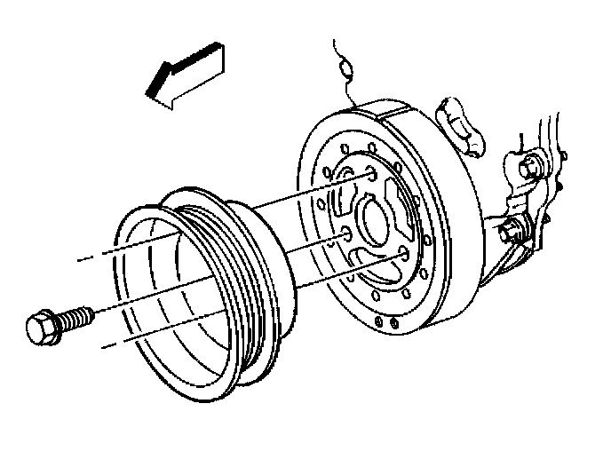 Notice: The inertial weight section of the crankshaft balancer is assembled to the hub with a rubber type material. The correct installation procedures (with the proper tool) must be followed or movement of the inertial weight section of the hub will destroy the tuning of the crankshaft balancer.