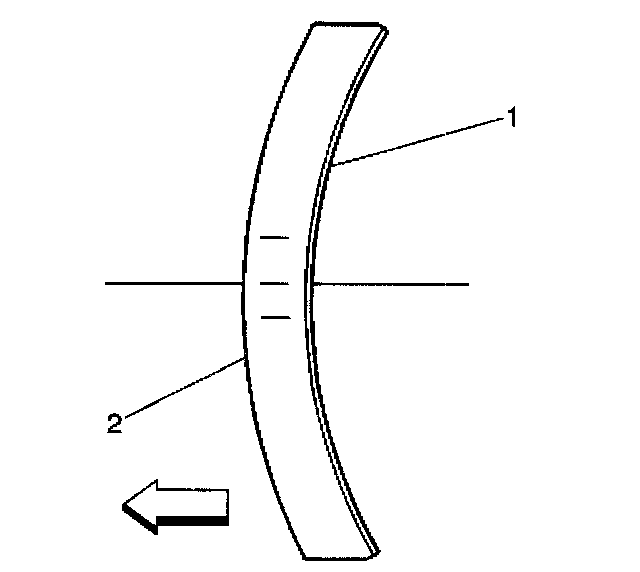 8. Ensure that the crown of the crankshaft balancer washer (2) is faced away from the engine.