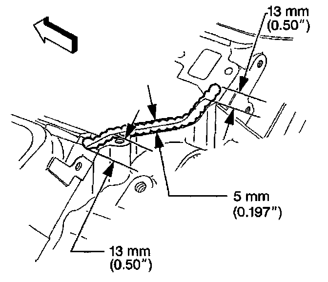 4. Extend the adhesive bead 13 mm (0.50 inch) onto each lower intake manifold gasket.