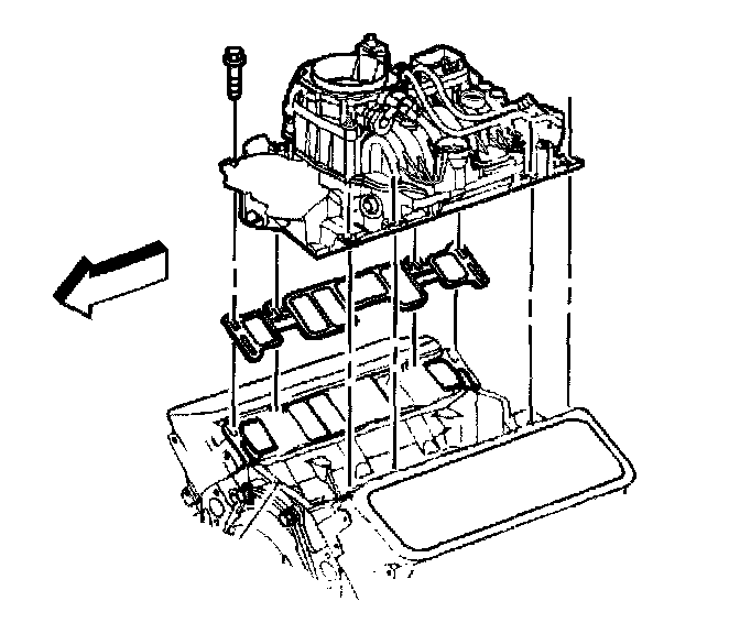 8. If reusing the fasteners, apply threadlock GM P/N 12345382 (Canadian P/N 10953489) or equivalent, to the threads of the lower intake manifold bolts.