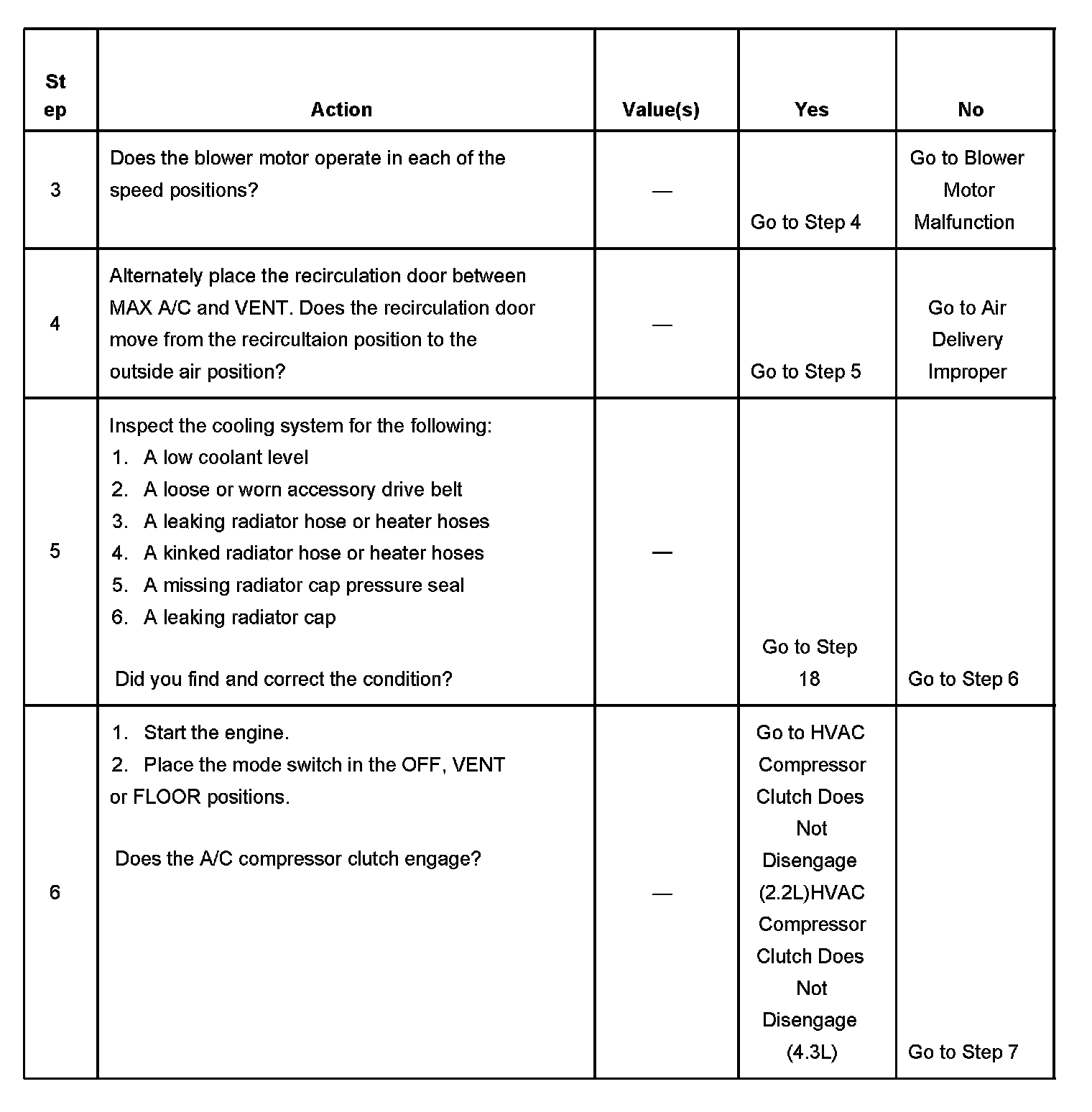 The number(s) below refer to the step number(s) on the diagnostic table.