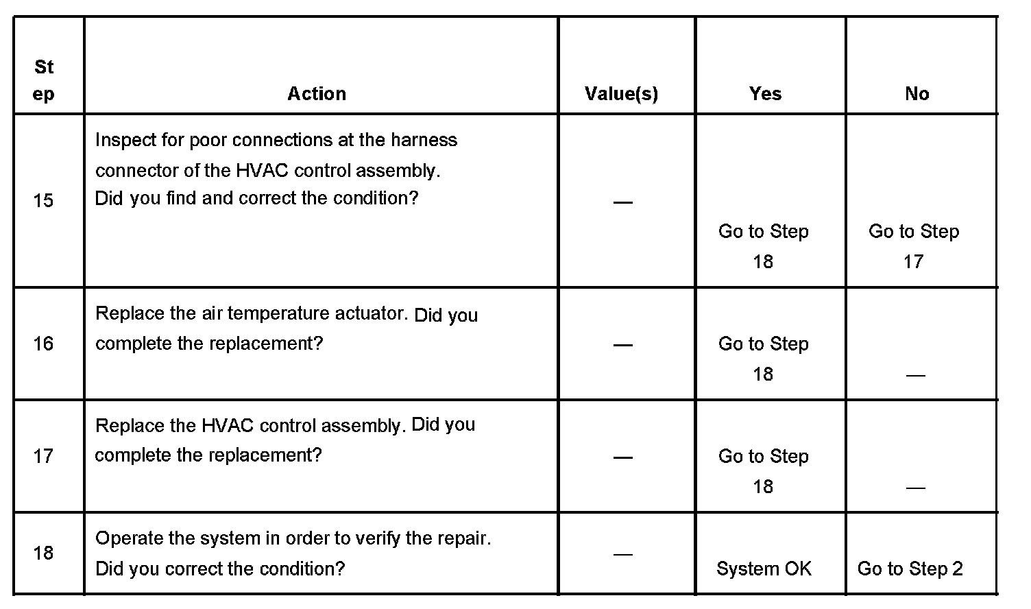 13. The voltage will vary between 0-12 volts during normal operation. The HVAC control module connector must be connected during this step.