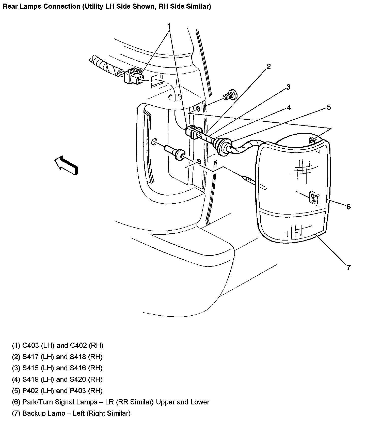 Rear Lamps Connection (LH Side Shown, RH Side Similar):