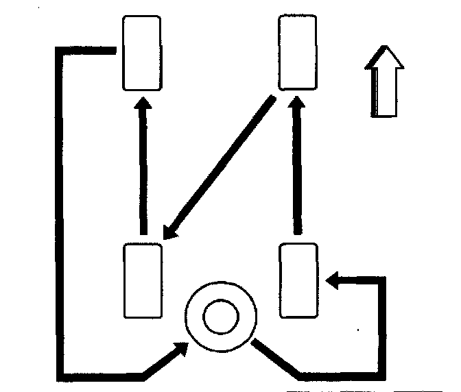 ^ For vehicles with single rear wheels (4 tires), rotate the tires as shown.