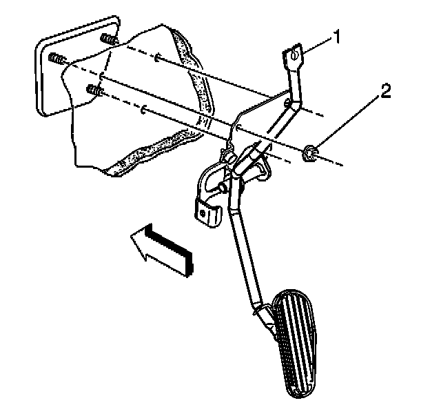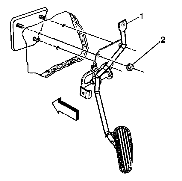 5. Remove the accelerator pedal mounting nuts (2).