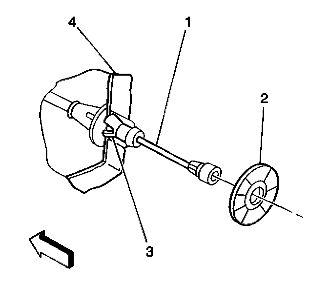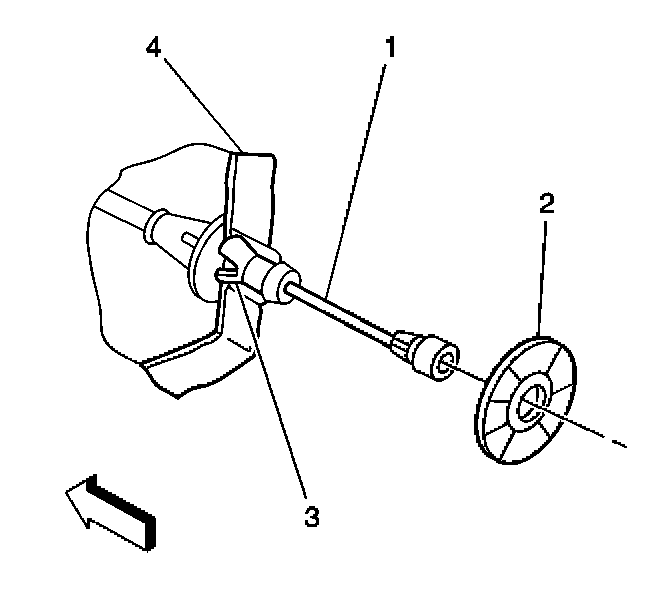 1. Install the accelerator cable (1) through the bulkhead (4).