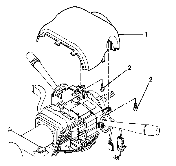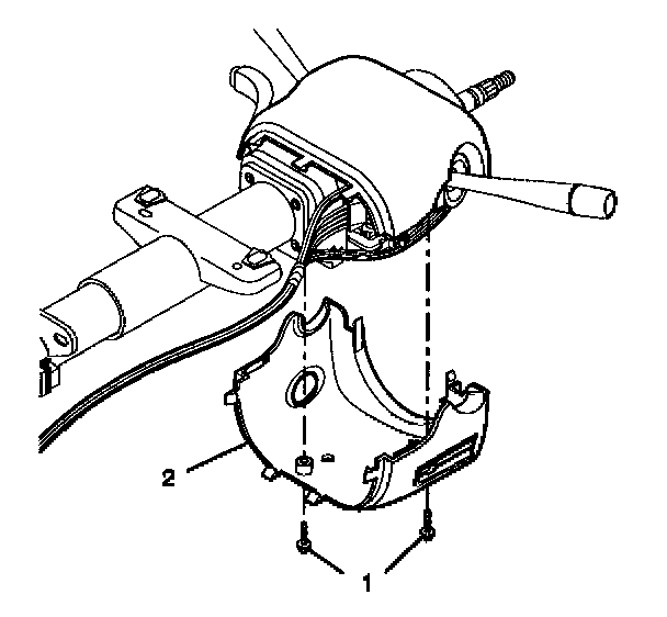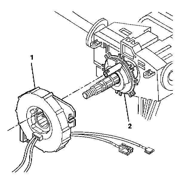 3. Align the SIR coil assembly (1) with the horn tower on the turn signal cancel cam assembly (2).