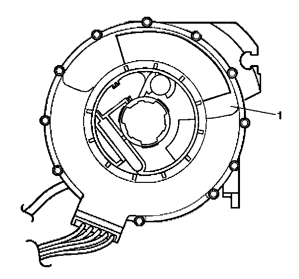 2. If centering is required, follow the instructions on the notice (1) of the coil assembly. Refer to Inflatable Restraint Steering Wheel Module Coil Centering in Steering Wheel and Column.