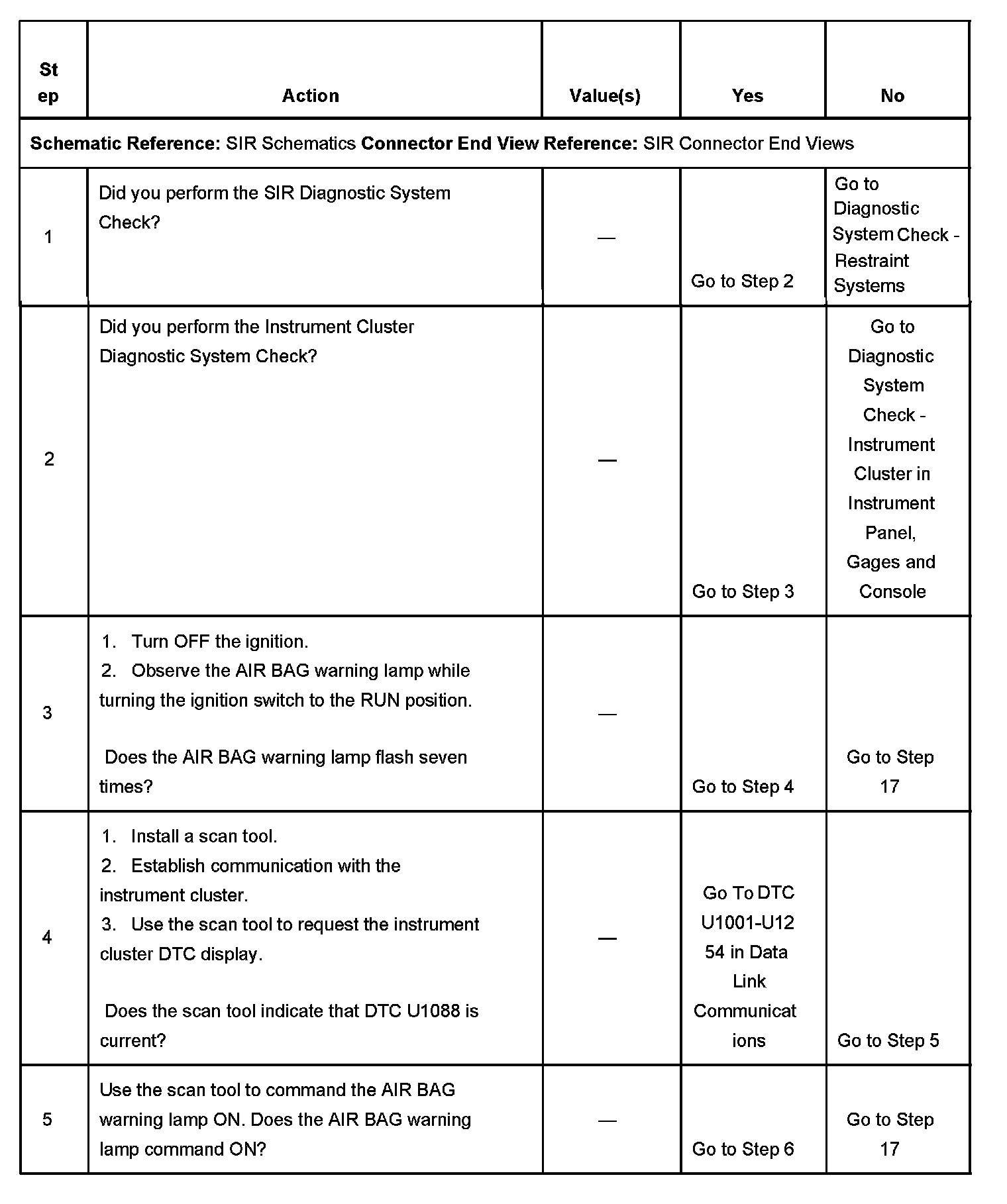 - The loss of serial data communication between the inflatable restraint sensing and diagnostic module (SDM) and the instrument panel cluster (IPC), will cause the AIR BAG warning lamp to come ON solid. Refer to DTC U1001-U1254 in Data Link Communications. Testing and Inspection