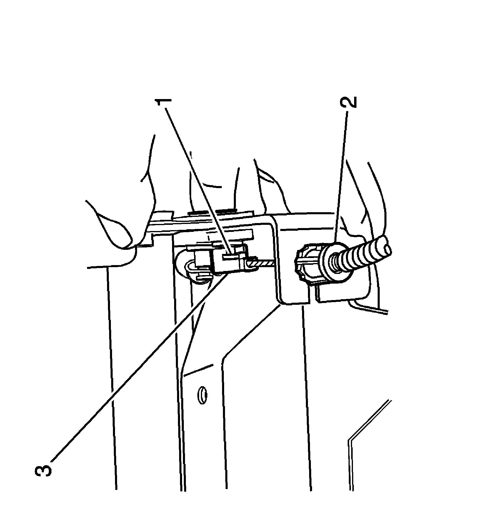 6. Remove the release cable (3) from the stud (1) on the head restraint retractor assembly.