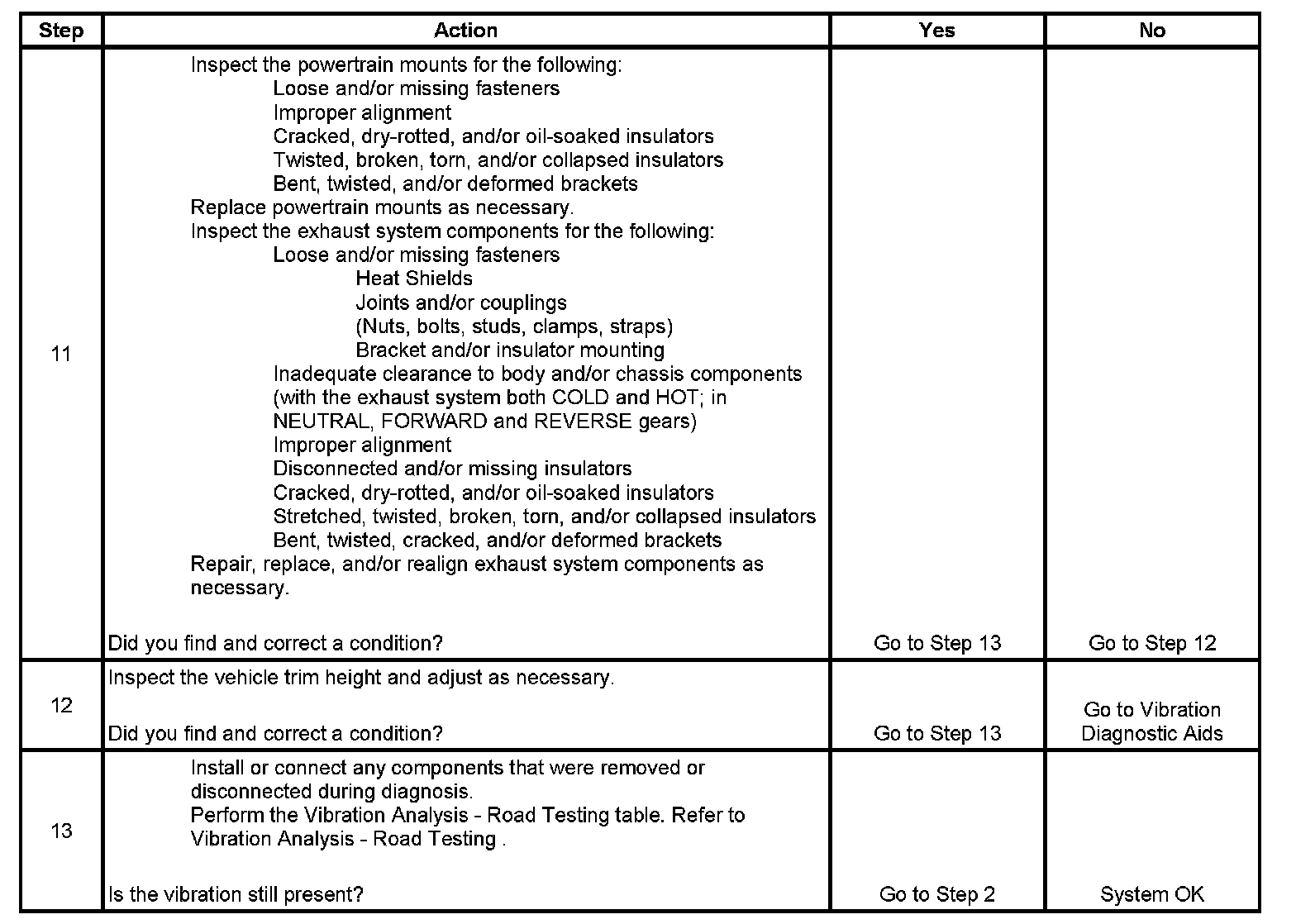 11. Damaged or worn engine, transmission, and/or exhaust mounts may cause a noise or vibration that may be transferred into the passenger compartment.