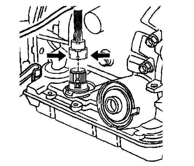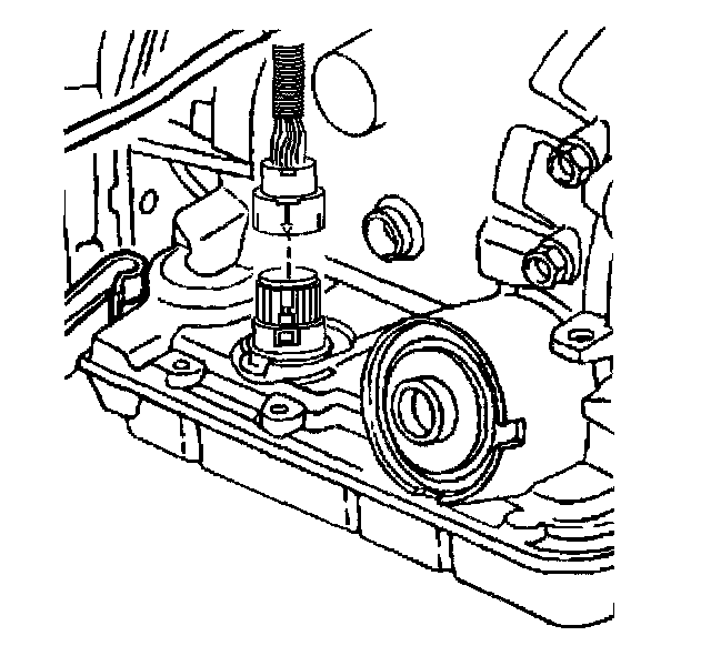11. Using J28458, release the pass-through electrical connector from the transmission case.