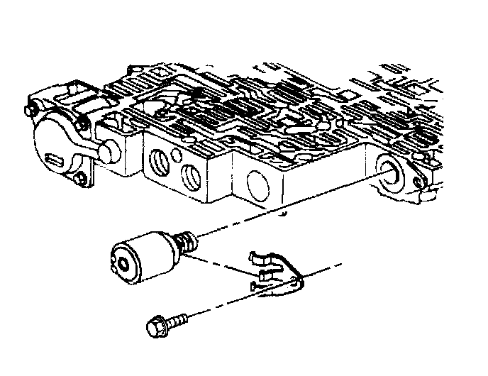7. Remove the TCC PWM solenoid in order to access one of the TCC solenoid retaining bolts.