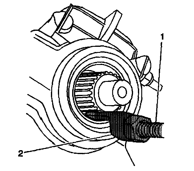 3. Remove the rear oil seal from the rear case using the J6125-1b (1) and the J23129 (2).