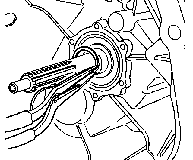 7. Install the 3 main shaft rear bearing retainer bolts. Apply threadlocker GM P/N 12345382 to the bolt threads.