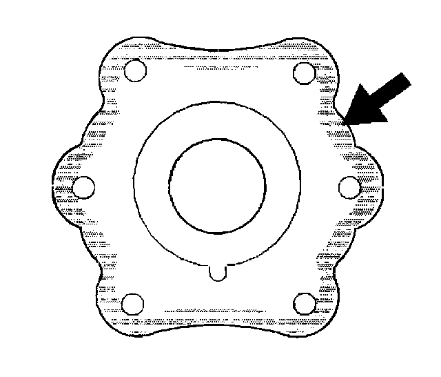 28. Apply RTV sealer GM P/N 12345739 or equivalent to the inside edge of the bearing retainer mating surface.