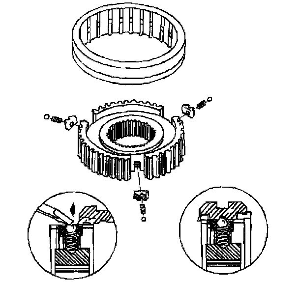 8. Inspect the synchronizer springs and the keys for damage.
