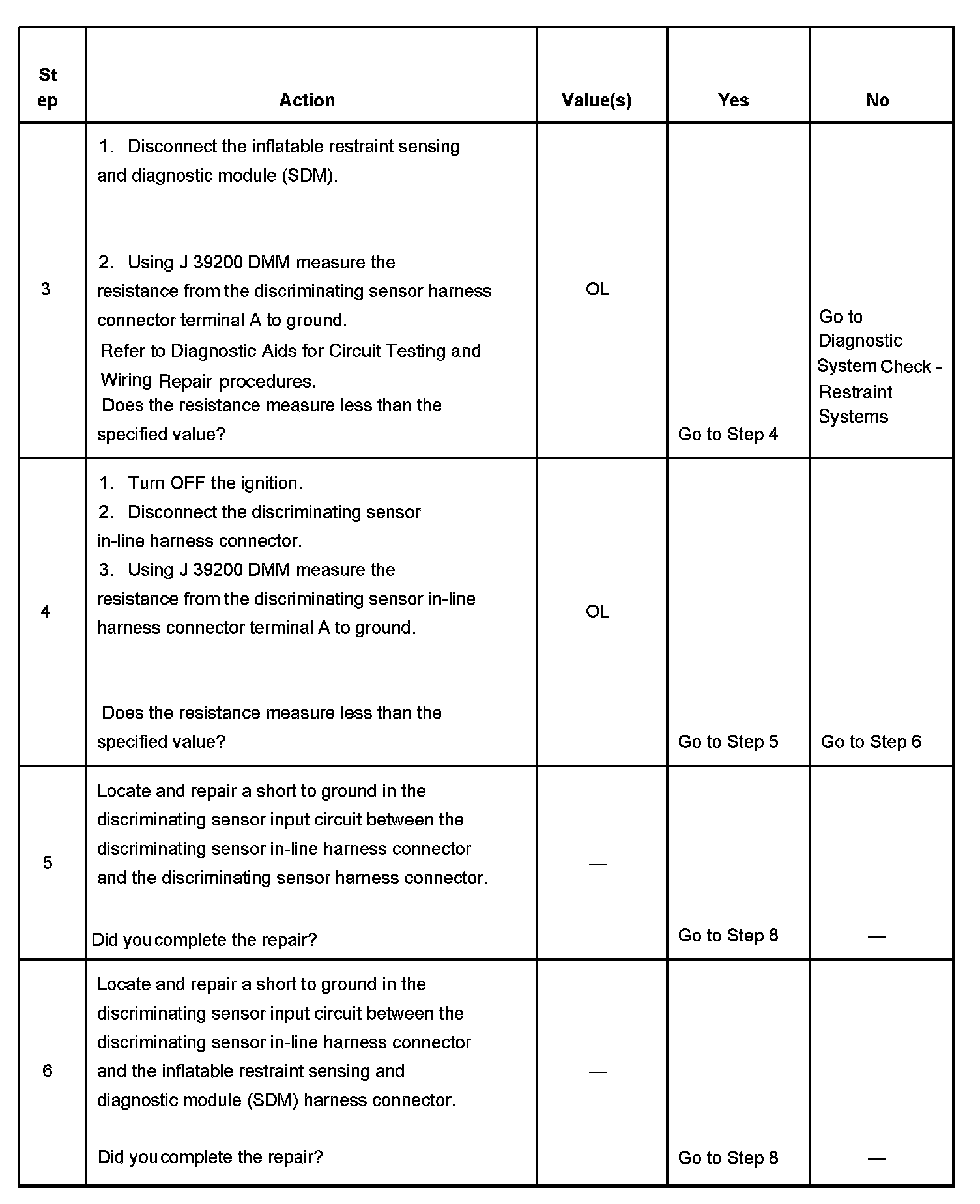 4. Tests isolates a short to ground in the discriminating sensor input circuit to one side of the in-line connector.