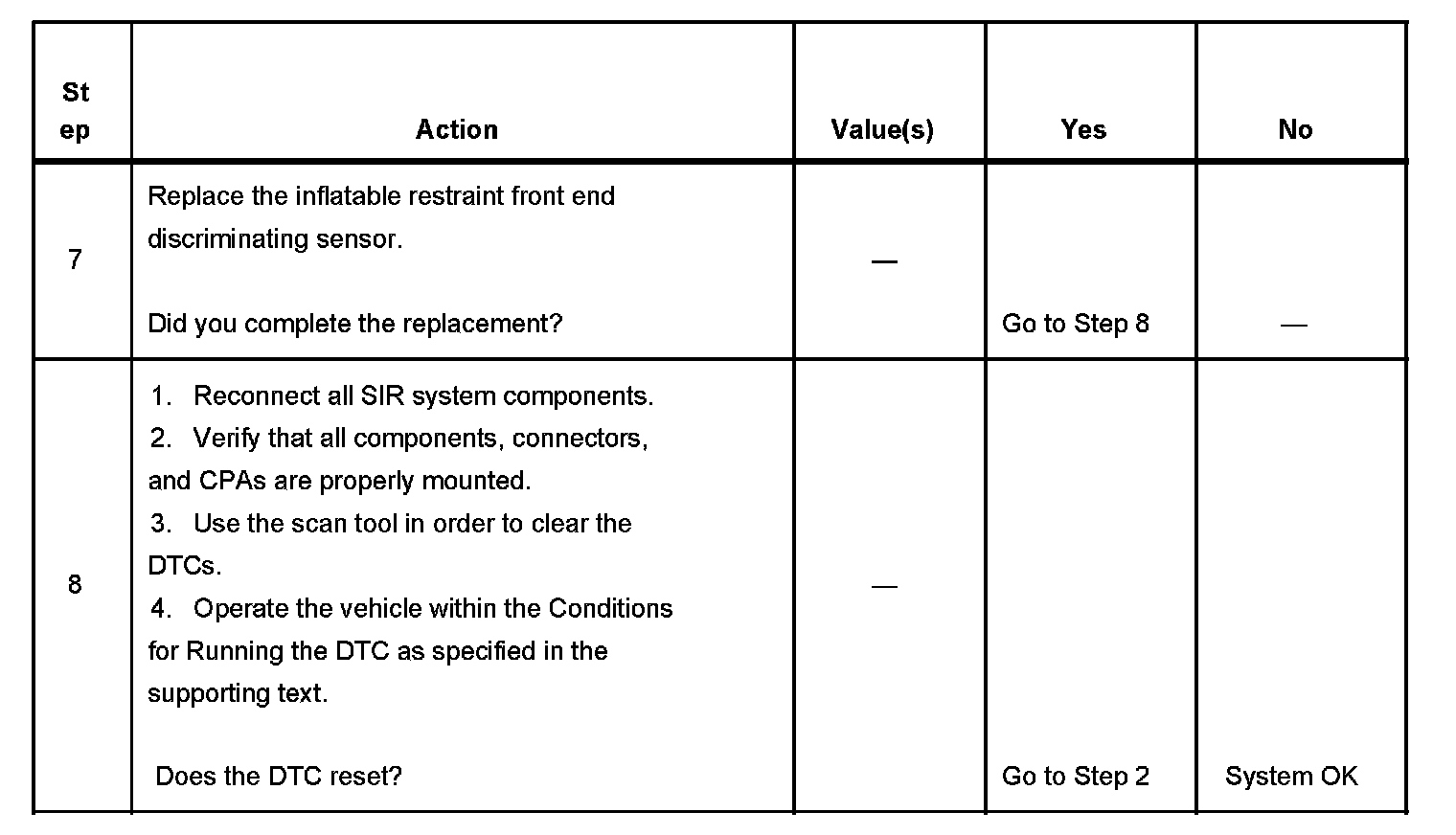 When the SDM detects that no DTCs are present, the SDM commands the AIR BAG warning lamp OFF.