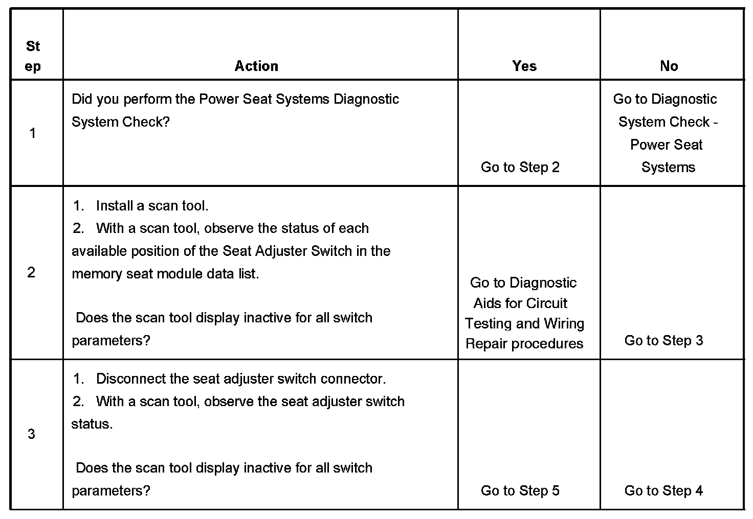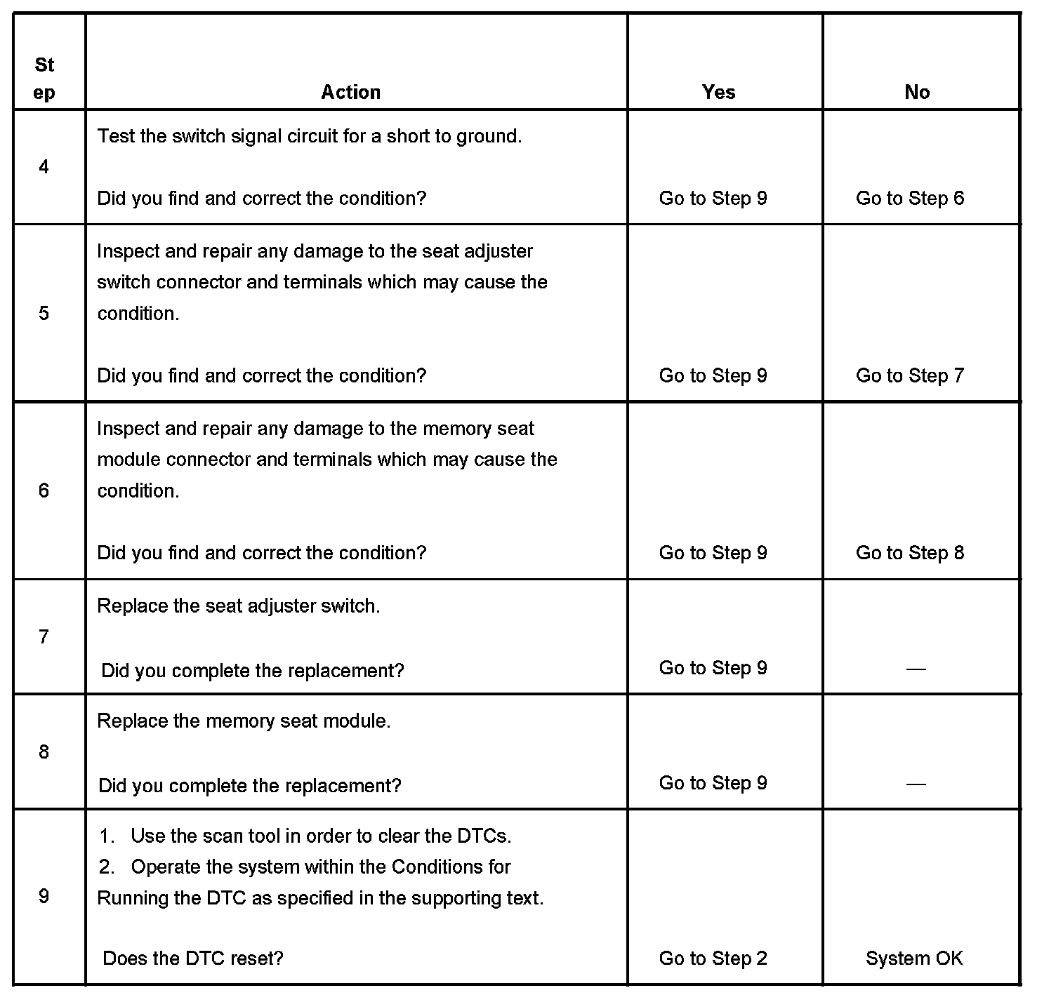 - The memory seat module will ignore the switch input for which a current status DTC is set.