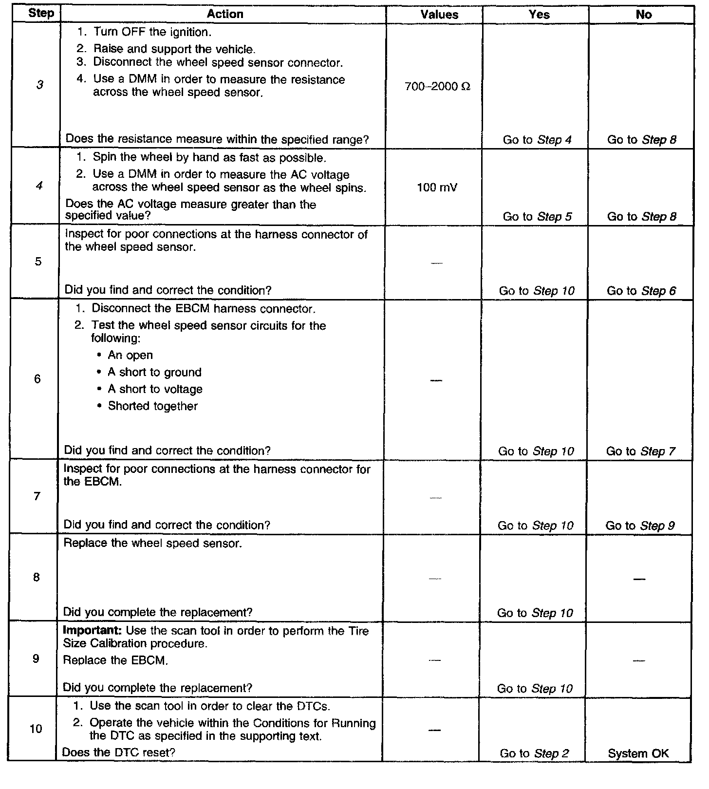 4. Ensures that the wheel speed sensor is generating a valid AC voltage output.